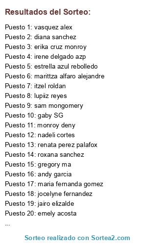Lista de participantes: rosa maria fernandez dorantes, maria fernanda gomez, marittza alfaro alejandre, jesus alvarez, malena rangel, esme zapothe, gregory ma, stephanie ortiz-andrade, maria monroy, arroyo b paul, andrea ruvalcaba, eduardo flores espinoza, vero paredes, lulu avila, zenn gomez, sam mongomery, nena kond, gaby SG, Claudia KM, Jhovany salinas paredes, jose luis soto, denisse guerrero, briizeyda saanchezz, esme soto, angie ortiz soto, yeiismiin jmz, jessy ramirez, nelly olvera, pedro rangel angeles, peola lopez perez, lizeth silva, santi sanchz sandy, gisel butanda, itzel roldan, elena hernandez, gabriel cp, pako mejia, yolo´z cab, jhoanna martinez, dulce rodriguez h, jocelyne fernandez, mariana tavera, antonio zamora, bernardo martinez, cheli mariano de calleja, maritza mendoza, estrella azul rebolledo, irene delgado azp, bryan aldair, angie gutierrez dorantes, renata perez palafox, quitzali diaz, daniela villaruel, mary fer pg, edith aguilar, danish bautista, uriel meza, blanca alvarado, alfred is, ari osorio, vasquez alex, brenda escargcega de escorza, tadira gc, lupita glez, nadeli cortes, emely acosta, yolath hl, yadir jesu, ezequiel mejia, leyda cas, mar mejia, jairo elizalde, angel anfelito angeles, mitzy palacios, monroy deny, lupiiz reyes, sofia granados, andy garcia, betzy palacios, janne vera, chikis omaña, pablito fabian, yanet gonzalez ceron, laura lascano, angel og, bety ramos, moises sanchez, hernandez maria yesenia, roxana sanchez, miguel angel canales, iliana ortega, liz vazquez, zury lopez, esme ort espi, yessy santos, esmeralda trejo hernandez, erika cruz monroy, anahi mendoza, diana sanchez, francisco gachuz lsa.