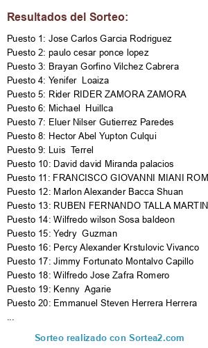 Resultados del sorteo: