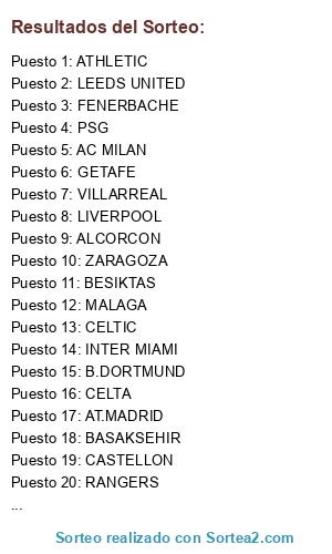Lista de participantes: CASTELLÓN, FENERBAHCE, GIRONA, LIVERPOOL, NAPOLES, M.UNITED, ZARAGOZA, R.MADRID.