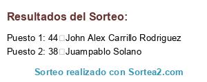 - Puesto 1: 44 John Alex Carrillo Rodriguez