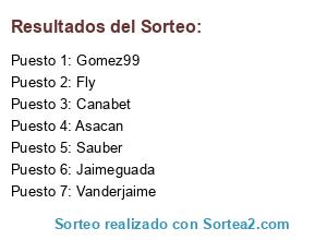 Lista de participantes: Jaimeguada, Vanderjaime, Canabet, Gomez99, Asacan, Sauber, Fly.