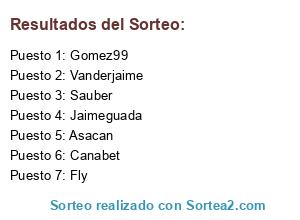 Lista de participantes: Jaimeguada, Vanderjaime, Canabet, Gomez99, Asacan, Sauber, Fly.