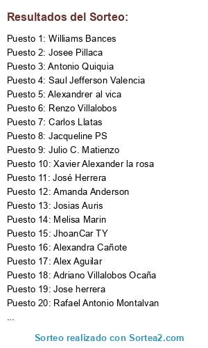 Lista de participantes: Abel Rooney, Abraham Visitacion Cochachin, Adam Mallqui, Ademir ct, Adriana Bravo, Adriana Moloche, Adriano Villalobos Ocaña, Ailen Flor Valles, Alanis Contreras, Alberto Lopez, Aldo Schenone, Alejandro Fredy Tacza, Alejandro Manuel Tirado, Alejandro Peña, Alessandra Sisgo, Alex Aguilar, Alex Mesa, Alexander Murillo, Alexandra Cañote, Alexandrer al vica, Allison Gamarra, Alvaro Canora, Alvaro Rw, Amadeo Centurin, Amanda Anderson, Amelia Palma, Americo pacheco, Ana Gelvonio Mesares, Andre bramon, Andrea Ballena, Andres Cataño Baltazar, Andres Gleiser, Andy Cuevas, Andy Pillaca, Anel RBerg, Angel Astocondor, Angelito aedo, Angie génesis rosales siu, Anthony barzola, Antonio Azavache, Antonio Quiquia, Antonio Tony, Arturo reyes, Bernardita Salvatierra, Brigitte Aguilar, Brigitte alvarez, Bryan tapia, Caleb Diamon’s, Carla Vargas, Carlitoz paz, Carlos Alfonso granda, Carlos Carmona, Carlos Clemente, Carlos Eduardo Mazza, Carlos Llatas, Carlos murrugarra valladares, Carlos Quinto, Carlos Velarde, Carmelitas Campoy, Carmen Delicia Gil, Carol Carrasco, Caroline Hewer, Cesar Enrique Vilchez, Cesar Rafael vega, Cesar Rengifo, Cesar Vera, Charles Flores, Cintya pamela, Cristian ct, Cristian Zavala, Cynthia Minaya, Dalton BC, Daniel Pacheco, Dante Vgv, Dario Gutierrez, Darling Ortiz Huaroto, David Berrospi, David De La Cruz, David Franco Panebra, David Mesia, David salvador, Denis arce, Denise Roa, Denise Valverde, Desireth Ugaz, Diana Carolina Navarro Urbina, Diana Mallma, Diana Rios, Diefo f. arana, Diego Valderrama, Diosa Atenea, Dnilsson jerico, Edda Correa, Eder G Zapata, Edgar Sanchez, Edson miranda, Eduardo huamani, Edwin Daniel Arturo Alvarado, El Viejo Javi, Elena Lizárraga, Eli iris, Elizabeth Trujillo, Elizabeth Velasco San Miguel, Elmer Javier Ortiz, Elsa Chiong, Emperatriz Pérez, Enrique Saenz, Erickson Velazco, Erics Montalvo, Erwin Alexander Contreras Lozano, Erwin Contreras Lozano, Esmeralda Elba Ochoa, Etzon Albornoz, Eu C. Pachao, Fabian andre villalba, Fabian depay, Fabrizzio Moquillaza, Feliz hugo paz, Fernando Peña, Fernando Perez, Fidel Arturo calderón, Fiorella Castro, Flor de milagros coch, Flores Rutjer, Fred grunge, Gabriel Galvez, Gabriel ichpas, Gary Contreras, Geovanna Lizarraga, Gerardo Acuña, Giancarlo tizon, Gilmer Fernández Barreto, Gino Trujillo, Giovanna chavez sibina, Giovanni Fernandez, Gisella Garcia, Gladys Castillejo, Gonzalo Francisco Huallanca Ruiz, Guillermo Arana, Guillermo Rivero, Helen dianne mendez, Henry Alessandro Prncipe Pantigoso, Hernan Alonso Orihuela, Hikina jt militah, Hubner azabache, Hugo Baldeon, Hugo Mauricio Romero, Isac Vilchez, Israel Reyes Tudela, Ivan Aliaga Sarmiento, Ivan Cruz, Ivan La Madrid, J Diego Chavez, J Luis Prado, Jackeline Claudio, Jacky Lira, Jacqueline PS, Jaime Cesar Ramirez, Jaime Trigoso, Jaira Grillo, Jasmin Sanchez, Jazmin caras, Jazmin Yadira, Je Si Ka Jess, Jean carlo, Jean Tarrillo, Jennifer Alejandro, Jenniffer Anco, Jesus Jesus, Jesus muñoz, Jhan Kenyi Peralta, JhoanCar TY, Jhon Barrionuevo, Jhon castillo, Jhonathan Tamayo, Jhonny zambrano, Jhoselin Cas, Jhosep Jhosep, Jimmy jara, Johana Mayer Quiroz, Johana Mesif, Johana tapia, John Toribio, Johny plaza, Jordan Mejia, Jorge cr, Jose Flores, Jose herrera, José Herrera, Jose Otiniano Sanchez, Jose Palomino, Jose rodas, Jose Rosa Caceres, Josee Pillaca, Josias Auris, Josue Torres, Juan Canelo, Juan Carlos Ponce, Juan Fernandez Bedia, Juan Lira, Juan Vargas, Juan Victor Torreblanca Boluarte, Juana Lucía, Julio C. Matienzo, Julio Varillas, Julio Zamora, Junior Chero, Jvnior myers’ Lb, Kami rojasn, Karen Marin, Karen solis, Karol Simon, Katherine Hurtado, Katiuska A Osorio, Katty Jauregui, Kevin Rivera Salazar, Kevin roke, Klaudya Rodriguez, Leonardo Chuquillanqui, Leonardo Huamash, Liliana Riquelme, Lio Alvarado, Lio Jose Aquino, Lisdey cedron, Liz Espinoza, Lorena Delgado, Lu Valverde, Lucianito AUris, Lucy Pinasco, Luis Alberto gavilan, Luis Antonio bejarano, Luis Enrique Rodriguez, Luis enrique rodriguez, Luis Enrique Velit, Luis Pauccar, Luis Trujillo, Luis vidal, Luiz nizama, Luz obregón, Lydi Barzola, Mami Vega Solis, Manuel Rojas, Marco bellido, Marco Larrea, Marco macavilca, Marcos Orozco, Maria Luisa Navarro, Maria Meza Paz, Mariana muñoz, Mariano Gutiérrez, Mario Gaviria, Mario Herrera, Marise Alejo, Marithza Urrutia, Marjory Osorio, Martin Meza, Mathias Rodrigues, Maty Valdez, Mayra Guevara, Medalid Rocio Paucar, Melanie Revilla Del Carpio, Melisa Marin, Melisa Rodriguez, Mell Iturrizaga, Melvin Rivas, Mica Isabel Castillo, Miguel Angel LH, Miguel Llannos, Miguel Soraluz, Milagros Stephanie Prado, Militsara Cardenas, Mirtha ayulo, Moises Castillo Cornelio, Moises Rocha, Monica Andrea Alvarado, Myriam Sg, Nath Quel Ro, Nathaly Santa Cruz, Nei s nc, Nicole vasquez, Nohe de la torre, Orlando cesar marin, Oscar Nichtz, Oscar Willy, Pablo cesar la Madrid, Pablo Velásquez Camilo, Pamy Ccyber, Patricia Flores, Patricia Urbina, Paul Oliver moreno, Paulo Jauregui, Pedro lopez, Pez Koi Karpa, Pierina stephany carrillo, Pietro Scottini, Prince Police, Priscilla TQ, QuispEspinoza Max, Rafael Antonio Montalvan, Raul Agüero, Raul Astoquilca, Renato Parra, Renzo Villalobos, Ri chi, Rioga Blas Rosales, Robin Mendoza, Romulo Mansilla, Ronald Quispe, Rossmery Quispe, Samuel Calero, Sanchez Andres, Sandra Salas, Sandra salas, Saul Jefferson Valencia, Sergio Navarro L., Solciito Caceres Panmer, Stefany Infante, Stephano neyra, Valeria Mautino, Valeria paz, Vic Ven, Victor Cerpa Prado, Victor Guerrero, Victor Manuel Villafuerte Batallanos, Victor pillaca, Victor robles, Victoria QC, Walter Silos, Watson Cir, Williams Bances, Wilson Andrade, Wilson Valverde, Xavier Alexander la rosa, Yamil Felipe Ramos Palacios, Yeseri Catrin, Yordenis Guilarte, Yoselin Andrea Huapaya, Yris MN, Ysabela Ybarra, Yuli Perez, Yulio Yoshiki.