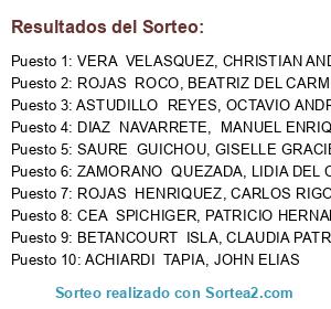 - Puesto 1: VERA VELASQUEZ, CHRISTIAN ANDRES