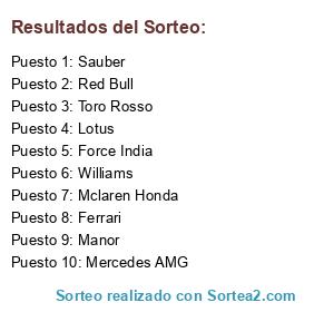Lista de participantes: Mercedes AMG, Ferrari, Williams, Red Bull, Lotus, Force India, Sauber, Toro Rosso, Mclaren Honda, Manor.