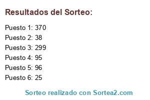 Este sorteo ha sido certificado por Sortea2. Sortea2 garantiza que: