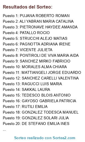 - Puesto 88: BERNARDI MIGUEZ LAUTARO TOMAS