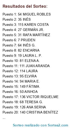 Resultados del sorteo: