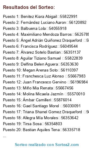 - Puesto 33: Dylan Nehemias Carrizo 55824468