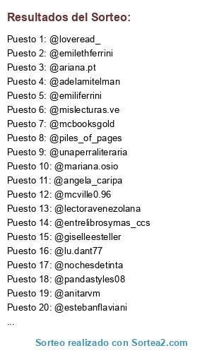Lista de participantes: @pandastyles08(3 participaciones), @anniuskalvarez, @piles_of_pages, @loveread_(7 participaciones), @emiliferrini(3 participaciones), @luisiana.sarria, @minasimoniello(3 participaciones), @esmeuzcategui, @mislecturas.ve(6 participaciones), @unaperraliteraria(2 participaciones), @anitarvm, @valeriebalen, @daniela_alessandra_o(2 participaciones), @tati_reads, @dewy.blossom16, @adelamitelman(3 participaciones), @lectoravenezolana, @mepicaelpdf, @ariana.pt(2 participaciones), @jennifer_gamez_vergara(2 participaciones), @l.horan._(5 participaciones), @genaru21, @lasinfoniadelibros(4 participaciones), @mcbooksgold(4 participaciones), @ginaginett, @mariana.osio(4 participaciones), @shannenssi(2 participaciones), @aurelizandrade, @sussyteixeira, @mcville0.96(3 participaciones), @ft_kari, @eluniversodeunlector(2 participaciones), @books_on_books_(2 participaciones), @daugtherofshadowsandik(2 participaciones), @narluism, @angela_caripa, @alexandraa_ruiz, @geneg2p(2 participaciones), @orilopez16(3 participaciones), @ericmitelman97(2 participaciones), @giselleesteller(2 participaciones), @nochesdetinta, @estebanflaviani(2 participaciones), @ymarupinto(3 participaciones), @entrelibrosymas_ccs, @lu.dant77, @emilethferrini.