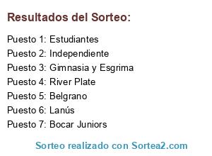 Lista de participantes: River Plate, Bocar Juniors, Estudiantes, Independiente, Lanús, Belgrano, Gimnasia y Esgrima.