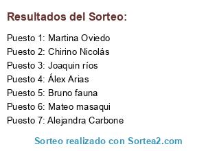 Resultados del sorteo: