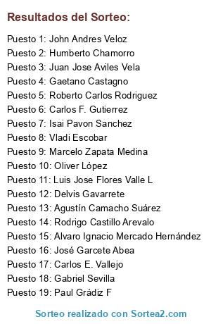 Lista de participantes: Gaetano Castagno, Vladi Escobar, Rodrigo Castillo Arevalo, Delvis Gavarrete, Gabriel Sevilla, John Andres Veloz, Humberto Chamorro, Carlos E. Vallejo, Juan Jose Aviles Vela, Agustín Camacho Suárez, Paul Grádiz F, Roberto Carlos Rodriguez, José Garcete Abea, Luis Jose Flores Valle L, Marcelo Zapata Medina, Oliver López, Carlos F. Gutierrez, Isai Pavon Sanchez, Alvaro Ignacio Mercado Hernández.