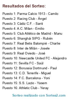 Lista de participantes: A.C. Milan - Emilio, Athletic Club - Yeray, Borussia Dortmund - Paul, C.D. Tenerife - Miguel, Cádiz C.F. - Santi, Club Atlético de Madrid - Manu, F.C. Barcelona - Yoni, Inter de Milán - Josele, Newcastle United FC - Alejandro, Parma Calcio 1913 - Camilo, Racing Club - Ángel, Real Betis Balompié - Charlie, Real Oviedo - José, S.S. Lazio - Yasem, Sevilla FC - Saúl, Shanghái SIPG - Rubén.