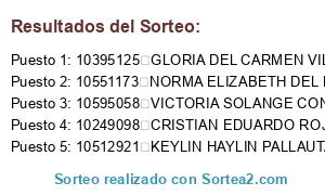 - Puesto 3: 10595058 VICTORIA SOLANGE CONEJEROS ROJAS