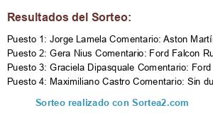 - Ganador 3: Graciela Dipasquale Comentario: Ford Falcón, BMW, Ferraris Romina Sandrini queremos ir