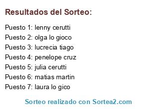 Lista de participantes: julia cerutti, olga lo gioco, lenny cerutti, laura lo gico, penelope cruz, matias martin, lucrecia tiago, .