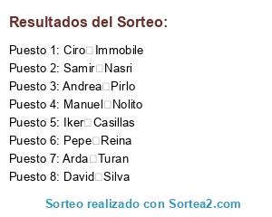 Lista de participantes: Iker Casillas, Pepe Reina, Isco Alarcón, Thievy Bifouma, David Silva, Carlos Bacca, Ciro Immobile, Marcelo, Andrés Iniesta, Pedro Cavanda, Manuel Nolito, Samir Nasri, Holger Badstuber, Benedikt Howedes, Javier Manquillo, Arkadiusk Milik, Sebastian Coates, Adrian, Iñigo Martinez, Jano Ananidze, Andrea Pirlo, Kyle Ebecilio, Ryan Gauld, Jonathan Williams, Arda Turan.