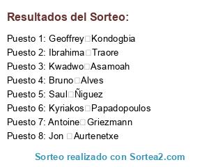 Lista de participantes: Yann Sommer, Kyriakos Papadopoulos, Edinson Cavani, Alvaro Morata, Ibrahima Traore, Kieran Gibbs, Michel Vorm, Yaya Toure, Marko Marin, Luke Shaw, Kwadwo Asamoah, Bruno Alves, Stephan Lichtsteiner, Joaquin Sanchez, Ruben Castro, Eliaquim Mangala, Antoine Griezmann, Geoffrey Kondogbia, Gokhan Tore, Thiago Silva, Saul Ñiguez, Jon Aurtenetxe, Joel Campbell.