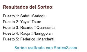 Lista de participantes: Thibaut Courtois, Sergio Romero, Federico Marchetti, Neymar, David Alaba, Juan Quintero, Casemiro, Yaya Toure, Radja Nainggolan, Yuto Nagatomo, Jerome Boateng, Vlad Chiriches, Sabri Sarioglu, Ricardo Quaresma, Mario Fernandes, Sergio Ramos, M'Baye Niang, Pablo Osvaldo, Thomas Muller, Lukas Podolski, Robert Lewandowski.