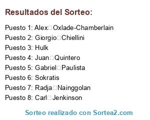 Lista de participantes: Luka Modric, Dries Mertens, Blaise Matuidi, Hulk, Giorgio Chiellini, Bernd Leno, Alex Sandro Lobo, Sokratis, Juan Cuadrado, Alex Oxlade-Chamberlain, Pierre-Emerick Aubameyang, Matija Nastasic, Juan Quintero, Daniel Sturridge, Igor Akinfeev, Alex Teixeira dos Santos, Radja Nainggolan, Gabriel Paulista, Cedric Soares, Mikel Balenziaga, Bruno Martins indi, Matheus Lima, Carl Jenkinson.