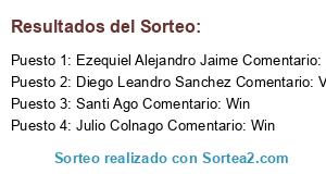 - Ganador 2: Diego Leandro Sanchez Comentario: Vaamoh