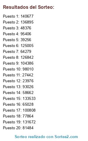 Resultados del sorteo: