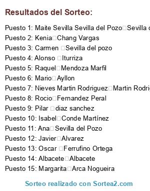 Resultados del sorteo: