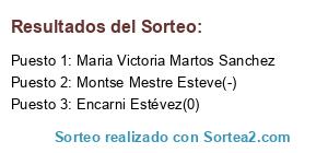 Lista de participantes: Adela S.M.(6 participaciones), Alicia Carrero Marcos(-), Almudhena Vb, Amaia Torres Sánchez(-), Amparo Fernandez Sanchez(-), Ana Lopez(-), Ana María Romero(-), Angela Carpente Garcia(0), Angelines Fernandez(-), Anna Balabanova(2 participaciones), Antonio GN(-), Beatriz Valle Garcia(5 participaciones), Carmen Castellano Juárez(5 participaciones), Carolina Mami Duna(-), Charo Romero Álvarez, Chelo Moa(0), Cipriano Moreno Aparicio(10 participaciones), Clara Gutiérrez González(-), Concepción López DEL Castillo(-), Concepcion Matias Simarro(-), Corinne Chérel, Daniel Gutierrez Cuevas(-), Diana Medina Medina(-), Domingo Carrique Belmonte(-), Domingo Carrique(11 participaciones), El Mundo de Netra(-), Elena Knyazhechenko(11 participaciones), Encarni Estévez(0), Encarni Sanchez Alanis(6 participaciones), Esther Mu?oz Martín(2 participaciones), Eva Bayón Manuel(-), Eva Maria Diaz Hidalgo(2 participaciones), Fina Quintanar Meco(4 participaciones), Francisca Martinez Ouviña(10 participaciones), Francisca Martinez Ouvi?a(-), Francisco González(5 participaciones), Gema Garcia Mora(-), Georgina Ortega(5 participaciones), Imma Le(-), Isabel Teis Tarinas(6 participaciones), Javier Gonzalez(5 participaciones), Jennifer Romero(-), José Alberto Pérez(-), Kapitana Corsaria Pirates(10 participaciones), Katerina Knyazhechenko(11 participaciones), Kristina Zapatos Tacon(-), Lali Pujala(-), Laura Ba Al, Laura Calvente Morales(2 participaciones), Lucía Martínez Barral, Lucia Xaica(-), Luisa Maria Garcia Repiso(-), Macarena Soria(7 participaciones), Manuel Calle(11 participaciones), Manuel Torres, Marga Knyazhechenko(10 participaciones), Mari Crespo(12 participaciones), Mari Jose Moreno Garcia(0), Mari Molina Silvestre, Maria Antonia Cantalejo(-), Maria Colomo Diaz(-), Maria Eugenia Arias Lozano(-), Maria Jose Carbonell(-), Maria Jose Martinez Gonzalez(13 participaciones), Maria Pilar Ortiz(0), Maria Victoria Martos Sanchez(12 participaciones), Mariló Salmerón Fernández(5 participaciones), Marta Taniha(-), Mertxe Di Tas(-), Mikalet Rosa Mena(6 participaciones), Mikel Zas(-), Mireia Soler Molina(-), Miriam Vanesa Fernandez Rodriguez(6 participaciones), Mónica Terán Arroyo(-), Montse Fernandez Martin(-), Montse Fernandez(2 participaciones), Montse Mestre Esteve(-), Nagore Arostegui Rojo(6 participaciones), Natalia Gaona Archs(-), Nuri Antón Bravo(4 participaciones), Núria Garcia(6 participaciones), Nuria Perez Ortega, Paula Guillén(2 participaciones), Pepi Romero Alvarez, Pilar Castillo Porras(3 participaciones), Pilar Macias Jimenez(-), Pilar Madrid(-), Pilar Moreno Madrid(3 participaciones), Pilar Paz Varela(-), Rafaela Monj, Raquel Del Vas Garcia(-), Raquel Fortuny(6 participaciones), Raquel Garcia(0), Raquel Valdes(-), Rosa María Sierra Álvarez(7 participaciones), Rosi Jabalera(11 participaciones), Sandra Ramirez(-), Sergio Arnaiz Delgado(-), Silvia Ales(-), Silvia Bacardí Limón(-), Simona Elena Stan(4 participaciones), Sofia Esther Ruiz Garcia(11 participaciones), Söniâ Lm(-), Sonia Martin Gonzalez(6 participaciones), Sonia Méndez Rodríguez(-), Sophia Sanchez Pe?a(6 participaciones), Susana Belzuz Pascual(0), Susana Gonzalez Castilleros(-), Susana Pinos Hernández(6 participaciones), Teresa Camara Montelio(-), To?i Palacio, Tu Estilo Lencería Fina(-), Uli Manj(11 participaciones), Vanessa Guerrero Peregrina(5 participaciones), Vanessa Mu?iz Alvarez.