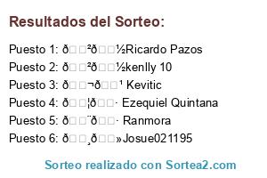 Lista de participantes: 🇬🇹 Kevitic, 🇲🇽kenlly 10, 🇸🇻Josue021195, 🇲🇽Ricardo Pazos, 🇨🇷 Ranmora, 🇦🇷 Ezequiel Quintana.