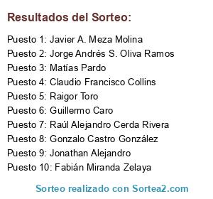 Lista de participantes: Jonathan Alejandro, Raigor Toro, Matías Pardo, Gonzalo Castro González, Claudio Francisco Collins, Raúl Alejandro Cerda Rivera, Guillermo Caro, Javier A. Meza Molina, Jorge Andrés S. Oliva Ramos, Fabián Miranda Zelaya.