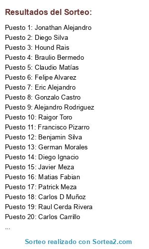 Resultados del sorteo: