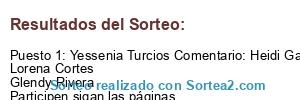 - Ganador: Yessenia Turcios Comentario: Heidi Gabriela Andino Lorena Cortes Glendy Rivera Participen sigan las páginas