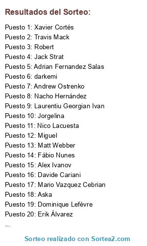 Lista de participantes: Aarón Jara(2 participaciones), Adrià Martin, Adrian, Adrian Fernandez Salas(5 participaciones), Alberto(2 participaciones), Alberto Arruego Zabalza, Alex, Alex Ivanov(2 participaciones), Alonso Ávila Godoy, Álvaro, Amir Salihefend(3 participaciones), Andrew Ostrenko (7 participaciones), Angel, Aska(2 participaciones), Ben Frederik(2 participaciones), Brian(2 participaciones), Bryan Doom, Cédric(4 participaciones), Col(4 participaciones), Costel Ivan, Dani(6 participaciones), Dario Pereira(2 participaciones), darkemi(3 participaciones), Davide Cariani(2 participaciones), Dejan(2 participaciones), Dominique Lefèvre, Dragos Pascal, Ekin Selçuk, Emil, Erik Álvarez(4 participaciones), Esteban Martínez(5 participaciones), Fábio Nunes(2 participaciones), Fabricio Peres Beletini(2 participaciones), Fernando D. Palacios(4 participaciones), Fishettini Spa, Gabriel Aaron, Graham, Héctor(5 participaciones), Idafe Fernández Lorenzo, Ignacio SM, Ivan Guisado Huertas, Jack Strat(3 participaciones), Jas(3 participaciones), Javier, Javier Paez Barberan, Jesús Miguel Sánchez Casaús(5 participaciones), Jesús Rufas(3 participaciones), Joan P., Jordi B(3 participaciones), Jordi C., Jordi Casellas Estrada(5 participaciones), Jorge Nuñez Camarena, Jorgelina(3 participaciones), Josep Soldevila, Juan Gustavo Basurto Gallardo(2 participaciones), juanjo(2 participaciones), Julián CR, Julien, Ken(6 participaciones), Kilian, Kimi, Laurentiu Georgian Ivan(3 participaciones), Mario Vazquez Cebrian(4 participaciones), Matt Webber(2 participaciones), Matthew Stancliffe Bird, Miguel(2 participaciones), MIKI, Mykola Havrylov(2 participaciones), Nacho, Nacho Hernández(5 participaciones), Nico Lacuesta(3 participaciones), O Xavier Manangon, Omar(4 participaciones), oscar, Pablo(2 participaciones), Pau Llopis Vidrier(3 participaciones), Poure Al(2 participaciones), Quentin, Renato, Renato Zaffari(2 participaciones), Ricardo Ahumada(4 participaciones), Robert, Robert W.(2 participaciones), Rohit SJ, Sebastián Abalde(3 participaciones), Sergi, Simo(7 participaciones), Sonia, Thibault Crtt, Travis(4 participaciones), Travis Mack(4 participaciones), Valle(4 participaciones), Xavier Amoros(2 participaciones), Xavier Cortés(5 participaciones), Yan Maurakh(5 participaciones), Ziortza.