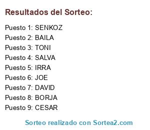 Lista de participantes: CESAR, BORJA, TONI, SALVA, IRRA, SENKOZ, DAVID, JOE, BAILA.