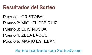 Lista de participantes: MARIO ESTEBAN, LUIS NOVOA, MIGUEL FCB RUIZ, CRISTOBAL, ZEBA LAGOS.