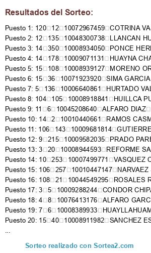 Resultados del sorteo: