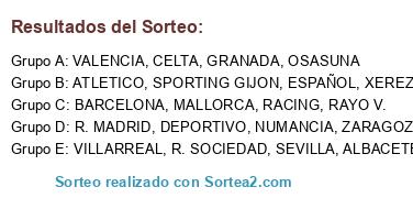 Lista de participantes: BARCELONA, R. MADRID, VILLARREAL, SEVILLA, XEREZ, OSASUNA, ZARAGOZA, CELTA, R. SOCIEDAD, RACING, MALLORCA, GRANADA, VALENCIA, ATLETICO, ESPAÑOL, DEPORTIVO, ALBACETE, SPORTING GIJON, NUMANCIA, RAYO V..
