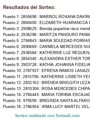 Resultados del sorteo: