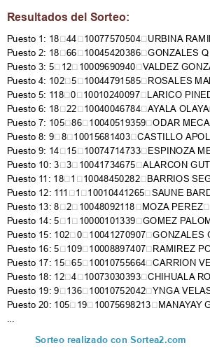 Resultados del sorteo:
