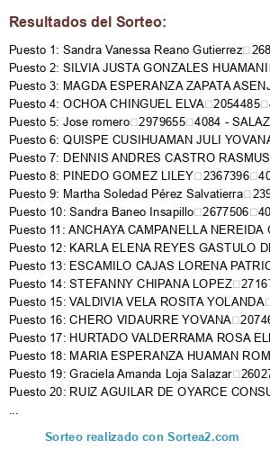 - Puesto 6: QUISPE CUSIHUAMAN JULI YOVANA 951607 4084 - SALAZAR VARGAS FLOR GENITH