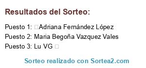 Lista de participantes: CY Shirley , Eli Ti Ti Ri Ti , Maria Nila Gonzalez Ferreiro , Ainhoa CN , Lina Gómez , Maria Begoña Vazquez Vales , Isabel Rio Braña , Tania Casabella , Jéssica Marqués Hermida , Chus Conde , Piseya Insua , Monica Mony , Patry Parga Arias , Engra Lopez Pereira , Elena Belgrano , Verónica LF , Hurs Ulah Paula Cdsj , Noelia Gómez , Adriana Fernández López , Carmen Murillo Afanador , Maria Castro , Marta Sánchez Sánchez , Verónica Cambón Núñez , Andrea Mariz Rodríguez , Srtaa Wallace , Lalore Lorelai , Jose Ramon Garcia Goyanes , María Del Río Gegúndez , Nathalia Garcia Lellis , Marta Cancio , Rafael Corral Bellas , Ada Rodriguez Gutierrez , Lucia Mayo Trashorras , Chelis Cancela , Vanesa Hernandez , Nuria Carballido , Iria Castro , Lu VG , Pablo Fernández Otero , Iago Eireos , Raquel Rivas , Jose Lombi , Silvia Lopez Fuentes , Lucía Rodríguez Sanfiz , Andrea Prado , Ana PM , Borja LV , Armesto Miguel , Sandra Álvarez , Sbsa Sbsa , Patricia Villasante , Noelia Fernández Sánchez , Goretti Sánchez Vázquez , Carlos Coira Nieto , Carmen Duarte Prieto , Patricia Moreno , Marena Clarkemacintyre , Angeles Glez , Monica Gonzalez Rouco , Celia Somoza , Beatriz De La Peña Fernández , Carmen Vieiros Zarauza , Zoraida Acuña , Mariajose Pena Lage , Pomba Luxilde , Pepa Vame , Rosario Bahamonde Bello , Leticia García Alejandre , Angeles Martinez Baamonde , Maria Jose Vales Garaloces , Patricia Fouce Rodríguez , Chus Segade , Vane Garcia Seijas , Teolinda Diéguez Ratón , Ana Rodriguez , Monik Lug , Limpiezas Sonia Villanueva , Carmen Cruz Ana Diaz , Gema Franco , Chus García Pernas , Sabela Le , Bea Caña Garcia , Isabel Valero Fernandez , He La , Teresa Fernandez Lopez , Emma Adrio Mouriz , Verónica Interiorista Uvelab , Ines Ouro Amor , Patri Alvarez , Vero PV , Belén Fer , Celsa Lodeiro Lamas , Carlos Diaz Herrera , Aarock And-Roll Roll , Nacho Varela Guerrero , Isabel Bel Bel , Diaz Nagodi , Vanesa Salgado , Saleta Alonso Barreiro , Antía Vázquez Rodríguez , MarFa A Sanz , Lu Varela Perez , Fina Fina Freire Lenza , Bea Díaz Fernández , Patricia López Pérez , Marta Río , Oskarballo Arbipol , Veronica Alexandra Colcha Tonato , Yolanda Otero Bis , Marta Martuka , Alba Lo , Ana Fernández Ramos , Victor M. Mourenza Dávila , Araceli Losada Vián , Andrea López , Pam Gómez , Rooci FL , María Grande , Marta Vila Alvarez , Mónica Alvarez , Kitty AndPau , Domingo Rebolo Mourelos , Jenni Real San Emeterio , Tris Lo , Andrea PRey , Laura Muiña , Ana Folgueiras , Miguel Ángel Ouro García , Paula Alvarez Fermoso , Ana María González Castaño , Lau García Méndez , Marta Vázquez Sánchez , Danna Sarmiento , Maria Perez Prado , Miguel Bravos Pazos , Bego Sanchez Diaz , Noelia Arias Díaz , Teresa Rodríguez Rodríguez , Leti Cf , Jee Fernández , Pablinho LM , Monica Rodriguez Rebolo , Cynthia Quintás AnTas , Ana Meiga Negra , Carol Fl , Vanesa Moreno , Javier Cabana Soengas , Loli Alvarez Neira , Ana Maria Montouto , Lucía Lane , Laura Muiña Díaz , Verónica Díaz , Isa Serén , Laura Corral , Vanessa Alonso Rodriguez , Andrea Martínez , Rocio Otero Lorigados , Albi Fdez , Sonia Corgo Guimarey , Natalia Belen Gomez Neira , Rebe Vázquez Castro , Roci Abuín Penas , Cons Moledo , Olalla Farrah-Fowler , Ruth Leon Gabarri , Olaya Novoa Souto , María Pérez , Alba Lamas López , Marta Feijóo López , Vero Nica Ca , Aroa Rpl , Margarita Marga Marga , Monica Villarin Parajua , Vanesa Lopez Mourelos , Fátima Lea , Raquel Perez Vazquez , Patricia Chamorro , Raquel Fernández Sanfiz , Carla Baz Lomba , Alejandra Pinillo Paz , SaRa Nm , Andrea Rodríguez Lage , Ana Piñeiro Mendez , J Jéssica Villadoniga , Carla Vázquez Formoso , María Fernández , Non Che Sei , Susi García Montes , Mirian Parajes , Di Ourense , Luz Veres Cordeiro , Karina Fdez , Arturo de Frutos , Miriaam Díaz Corral , Mirian Parajes , Maria Cuba , Bea Novoa Diez , Cristina Espiño , Laura Díaz Álvarez , Andrea Valin Fontao , Valle Guine , Merce Gonzalez Fraga , Jilito Alma , Jael Blanco Castedo , Alba Fernández Souto , Irichiña Kaos , Vanessa Rielo Balado , Jose Fdez Arias , Sonia Muinelo Fernández , Ruben Anido , Carmen Fariñas , María José Vicente Sánchez , Mary Fernández Vilanova , Iria Santos , Sonia Marti Agramunt , Beatriz Vazquez Fernandez , Mariam Mendez Iglesias , María Murujosa , Ivan Cuadras Lopez , .