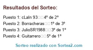 Lista de participantes: Borracheras 1º de 3º, JulioSR1988 3º de 1º, cLaIn 93 4º de 2º, Guitarrero 5º de 1º.