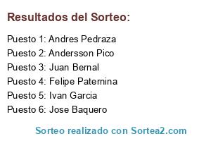 Lista de participantes: Juan Bernal, Felipe Paternina, Andres Pedraza, Ivan Garcia, Andersson Pico, Jose Baquero.