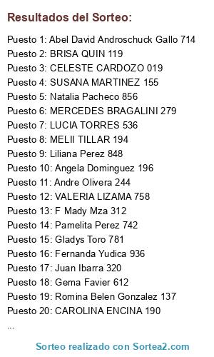 Lista de participantes: Maria Constanza Gurruchaga 542, Garay Juan Marcelo 112, Cynthia Illanes 254, Silvia Napolitano 352, Mónica R. Espinosa 651, Teté Vega 178, Anabel Ann 554, Karen Villafañe 661, Veronica Gonzalez 080, Natalia Pacheco 856, Angela Mary Gil 138, Carina Natalia Caponi 303, Dayana Mendez Amira Nur 767, Tefi Cabral 001, Mirian Pereyra 737, Araya Maira Janet 434, Antonella Flowers 234, Tonga Morales 792, Noelia Fernandez 986, Claudia Carranzani 722, Jesii Verderico 248, Gonzalo Gaston Marin 543, Dani Consoli 230, Sandra Paez 024, Eugenia Maria Gomezbourguet 480, Gaby Gisel 175, Fernanda Yudica 936, Anto Siciliani 049, Carola Torres 162, Daniela Calderón 254, Eli Durán 012, Paola Manrique 187, Andre Olivera 244, F Mady Mza 312, Gema Favier 612, Beatriz Portuguez 263, Val Flores 711, Patricia Sabatini 044, María D Agostini 190, Yessi Arancibiia 647, Vanesa Andía 331, Mariana Neira 697, Susy Antunes 183, Ro Guiraldez 381, Andrea Vargas Piccone 293, Ama Castillo 679, Liliana Martinez 543, Memi Asensio 214, Maria Victoria Lucero 886, Valen Fernandez 463, Gladys Noemi Chiabrando 501, Lau Martinez 246, Jorge Adolfo Carrizo 834, Veronica Riddell 384, Nidia Castro 709, Gladys Gringa Alvarez 822, Raul Gabriel Valdez 583, Stefania Prieto Trentacossti 368, Maria Elena Medina Bello 420, Susana Marina Fagiolani 462, Andrea Palmeri 520, Erica Lorena Baigorria 297, Mari Humante 955, Jaime Renato 480, Luciana Nadal 482, Rosa Eb 501, Celeste Castalioto 810, Barbis Ale 620, Ely Vidosa 677, Delfii Callieris 224, Andrea Mayorga 147, Abel David Androschuck Gallo 714, Paola Galdames 367, Erika Lucero 426, Estefanía Caballero 486, Anto Miranda 818, Ema Mar 943, Gisel Lopez Gonzalez 580, Silvia Sanchez Verdejo 205, Aldy Espi 833, Gisela Espinosa 838, Maria Lourdes 188, Cele Lucero 337, Sole Neira 840, Johana Flores 525, Jime Medina 701, Lidia Nancy Coria 519, Lucia Fernandez 616, Prisci Perez 133, Karuu Majul 022, Analia Ascensio 764, Adriana Ari Lacordoba 569, Marigel Monte 005, Jime Ontivero 090, Celeste Cardozo 594, Monica Beatriz Perez 641, Maria Sonia Del Ponte 003, Maarii Gonzalez 492, Yovi Daniela Farfan 714, Juan Ibarra 320, Susana Ruggeri 153, Rosa Olmos 760, Gladys Fantoni 142, Cesia Lomas 013, Andrea Bazan 566, Evi Lahora 776, Brenda Antonella 834, Leandro Badano 616, Veronica Vida 482, Maximiliano Gonzalez 800, Carina Sandoval 926, Paula Ortiz 549, Andrea Flaviani 472, Susana Kraviaz 724, Silvana Vera 942, Juliana Flores 729, Monica Videla 832, Yoly Apaza 759, Natalia Sofia Razquin 613, Isabelle Furfere 025, Luisina Chalar 143, Maria Gil 314, Johana Peña 864, Lali Aguero 786, Cecy Herrera 858, Laura Espejo 667, Andrea Machuca 750, Mariela Abaca 161, Gladys Toro 781, Noe Villegas 684, Nora E. Altamirano 967, Maria Flores 360, Anita Cue 985, Elida Charo Balmaceda 849, Liliana Perez 848, Erica Villegas 061, Carina Ce Jara 604, Alito J. Oviedo 388, Erica Foscolo 705, Agustina Aristiarán 546, Carla Belen Garcia 467, Marisa Lopez 967, Corina Peralta 368, Monica Oviedo 568, Natalia Polimeni 190, Silvana Beatriz Serrano 294, Maga Lucero 851, Cory Cory 398, Deby Ledesma 558, Gise Leiva 811, Lui Pagano 649, Cecii Donoso 714, Pamelita Perez 742, Silvia Besabe 920, Noelia Parisi 037, Isabell Canello 481, Nani's Scamardella 639, Joana Sosa 476, Araujo Miriam 446, Susana Cuadro 741, Fernanda Sotelo 095, Patricia Gonzalez 148, Marcela Cortez 479, Yanina Gisel 486, Andrea Baca 651, Euge Martinez 954, Gisela Lourdes Gimenez 172, Angela Dominguez 196, Romina Belen Gonzalez 137, Lorena Arroyo 068, Ana Araoz 082, Roxana Marin 083, Maria Poquet 793, Carolina Videla 839, Roxana Quiroga 597, Talii Ponce 070, Maria jose Becerra 113, GABRIELA PERRELLI 647, MARIA ALEJANDRA 083, GABRIELA BELEN 179, NATALIA OLIVAREZ 544, GISE LEIVA 811, NANCY MARTINEZ 631, ANALIA LUCIANITO 086, ANDREA PARTUCCI 146, ELVIRA DEL CARMEN JIMENEZ 915, FLOOR MORENO 578, DEOLINDA TRINIDAD CIPOLLONE 182, PATO TRONCOSO 807, EVA LOPRESTI 855, ANDREA PINTOS 126, ELVA SUSANA SALINAS 427, MARCELA CORTEZ 479, CRISTINA DI NATALE 430, ELSA MATTIOLI 246, ROSA CASSATA 142, ELIZABETH AGUERRE 459, CARI RIGGIO 037, RITA DIAZ 279, CATY CRIS CATALA 263, ISABELLE NUÑEZ 449, GLADYS SOLORZA 019, JULI LEDOLA 126, MAMELET FUATY 746, CELI LU 833, MABEL BADRAN 092, ELIANA MUÑOZ RUARTE 685, CAROLA BULNES 238, MARISA FERNANDEZ 140, ROSA OLIVA 129, ALE NUÑEZ 891, JUANA NELLY VELASQUEZ 158, ROMINA CALDERON 098, MARIA FERNANDA CHAVARRIA 173, MARIA ESTELA 744, ERICA MOYANO 951, RINA CRISTINA RODRIGUEZ 226, JENIFER BARRERA 213, MERY CORONEL 181, NOELLE MARIAN 235, CARLA BELEN GARCIA 467, CAROLINA RAVIDA 388, VIVIAN ORTUVIA 155, CELESTE CARDOZO 019, NOELIA GARCIA 829, LALY QUIROGA 815, MARIA ROSA BURGI 002, JULIA ESTELA POBLETE 974, BELEN RODRIGUEZ 277, GABRIELA ADRIANA YACOPINI 540, MARIA ALEJANDRA ANGEL 476, PERLA NORA 805, MARCELA CHAMORRO 519, VERITO PEREZ 071, MIRTHA CARMELO PEÑA TELLO 868, DELIA ZBIRIA 752, VALERIA QUESADA 238, MERCEDES BRAGALINI 279, DANA OSORIO 106, JUAN FRANCISCO MUÑOZ 257, GIULII CARRASCO 456, SUSI DI MARCO 314, NORMA LESCANO 502, MIKAELA MICIELI 925, CAROLINA ENCINA 190, BRISA QUIN 119, GABRIELA TELLO 639, JULIA LEDESMA 475, JAKENO DIAZ 333, ENZO ASMET 544, SUSANA MARTINEZ 155, SOFFI LUFFI 914, SANDRA CARRASCO 103, MIRIAM BEATRIZ RIZZOTTI 754, NAOMI NUÑEZ 430, MARIINA LEMOS 903, MELI AÑES SANTI 912, VALERIA CAVIGLIASSO 943, IVANA AVILA 689, CANDELA MUÑOZ 915, NANCY SANTANDERGUTIERREZ 067, ANA MARIA MERLO 868, FLAVIA VIVALDELLI 839, VERENA KATERINNE CASTILLO FERRARI 966, CECILIA NIEVAS 116, MARIANA RUTH GODOY 351, ALE JAIME 429, VALE RO 883, SILVANA TOLE PATRY 417, ADRIANA MERCADO 880, YESHI ROMINA BATTILANA ORELLANA 016, YENINA ZABALA 154, MARIA GALVAN 455, MONICA MARTINEZ 328, ALBA NIDIA MACIEL 881, ELI CHIRINO 940, PAULI GUEVARA 818, AMELIA ESTHER LUCERO 847, ELSA MIRANDA 983, ANDY GONZALEZ 490, PATRICIA GALVAN 052, VALERIA MOYANO 226, MONICA GANDINI 495, DANI BARRERA 478, ELSA ROSARIO ANIEVAS 041, PAU LITA 029, PATRICIA