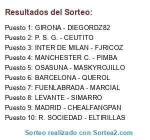 Lista de participantes: INTER DE MILAN - FJRICOZ, BARCELONA - QUEROL, P. S. G. - CEUTITO, R. SOCIEDAD - ELTIRILLAS, MADRID - CHEALFANGPAN, FUENLABRADA - MARCIAL, MANCHESTER C. - PIMBA, GIRONA - DIEGORDZ82, OSASUNA - MASKYROJILLO, LEVANTE - SIMARRO.