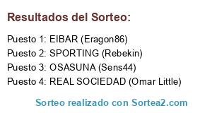 Lista de participantes: SPORTING (Rebekin), REAL SOCIEDAD (Omar Little), EIBAR (Eragon86), OSASUNA (Sens44).