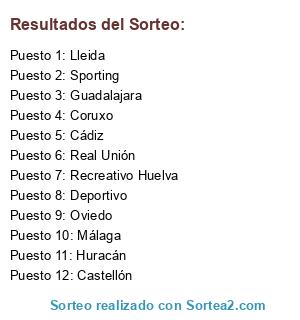 Lista de participantes: Recreativo Huelva, Real Unión, Cádiz, Deportivo, Castellón, Guadalajara, Lleida, Sporting, Málaga, Huracán, Oviedo, Coruxo.