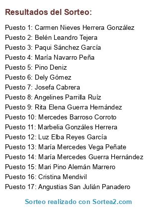 Lista de participantes: María Mercedes Vega Peñate, Angelines Parrilla Ruíz, María Navarro Peña, Marbelia Gonzáles Herrera, Rita Elena Guerra Hernández, Pino Deniz, Cristina Mendivil, Belén Leandro Tejera, Josefa Cabrera(2 participaciones), Paqui Sánchez García, María Mercedes Guerra Hernández, Mercedes Barroso Corroto, Mari Pino Alemán Marrero, Dely Gómez, Carmen Nieves Herrera González, Luz Elba Reyes García, Angustias San Julián Panadero.