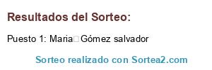 Este sorteo ha sido certificado por Sortea2. Sortea2 garantiza que: